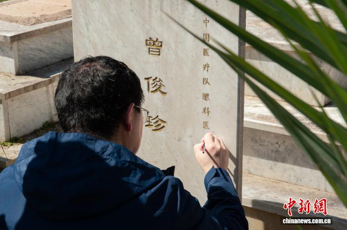 本地工夫4月5日,华夏驻阿我及利亚使馆任务职员、中原援阿我及利亚医治队队员及正在阿中资机构代替前去阿我及我阿利亚(El Alia)义冢启铺祭扫举动。图为祭扫职员为墓碑碑文描金。(中原援阿我及利亚疗养队供图) 默悲毕,祭扫职员顺次漫步向前敬献陈花,依靠对于先辈本族的无限悲哀;仔细算帐墓园纯草、拂拭墓碑灰尘、仔细料理周边境遇,并为墓碑碑文描金。